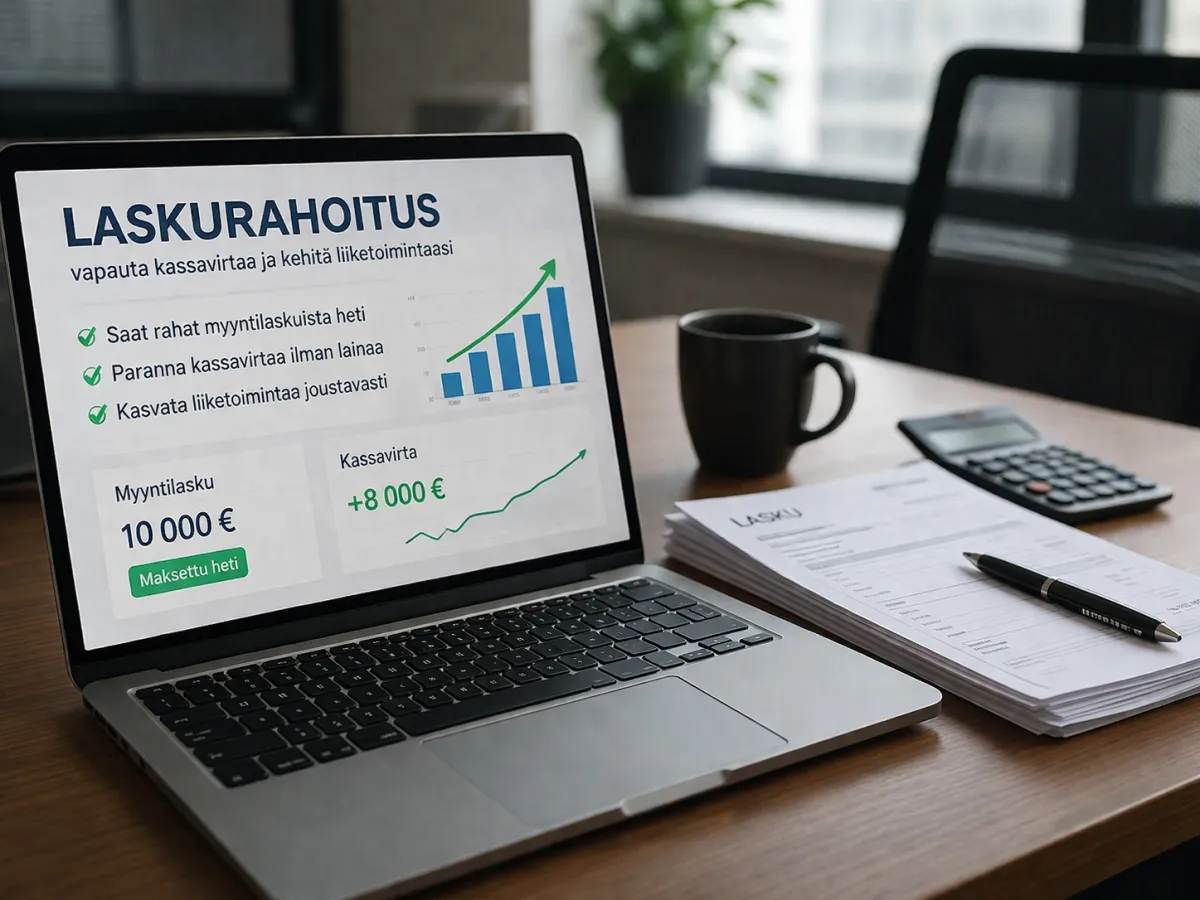 Laskurahoitus on yksi tehokkaimmista tavoista parantaa yrityksen kassavirtaa ilman perinteistä lainaa. Moni suomalainen pk-yritys kamppailee pitkien maksuaikojen kanssa – asiakkaat maksavat 14, 30 tai jopa 60 päivän viiveellä, mutta palkat, ostot ja verot erääntyvät heti. Tässä kohtaa laskurahoitus voi olla ratkaiseva työkalu.